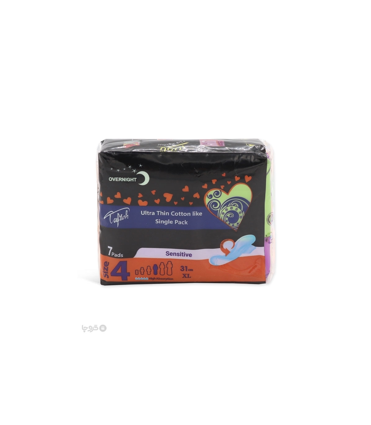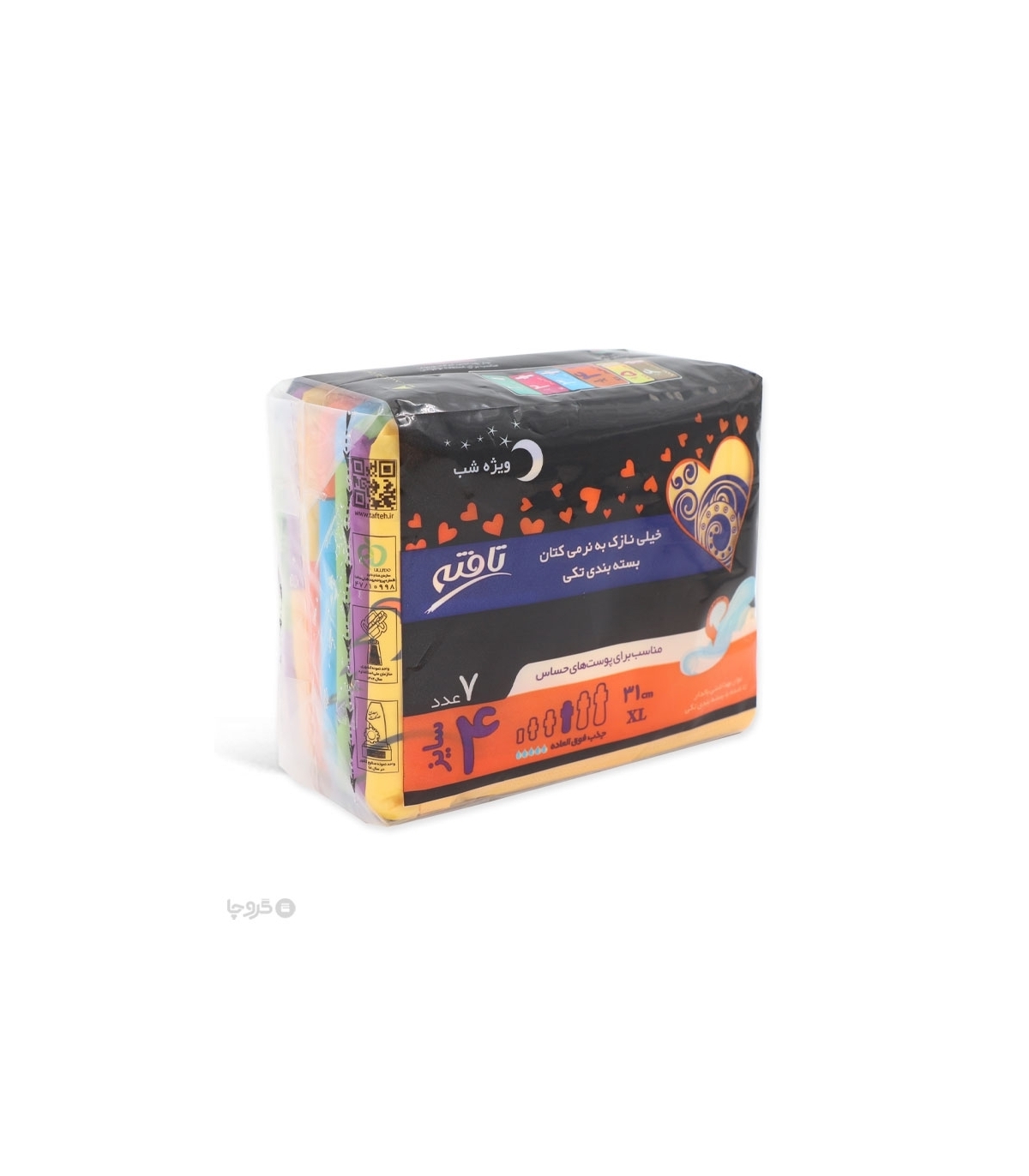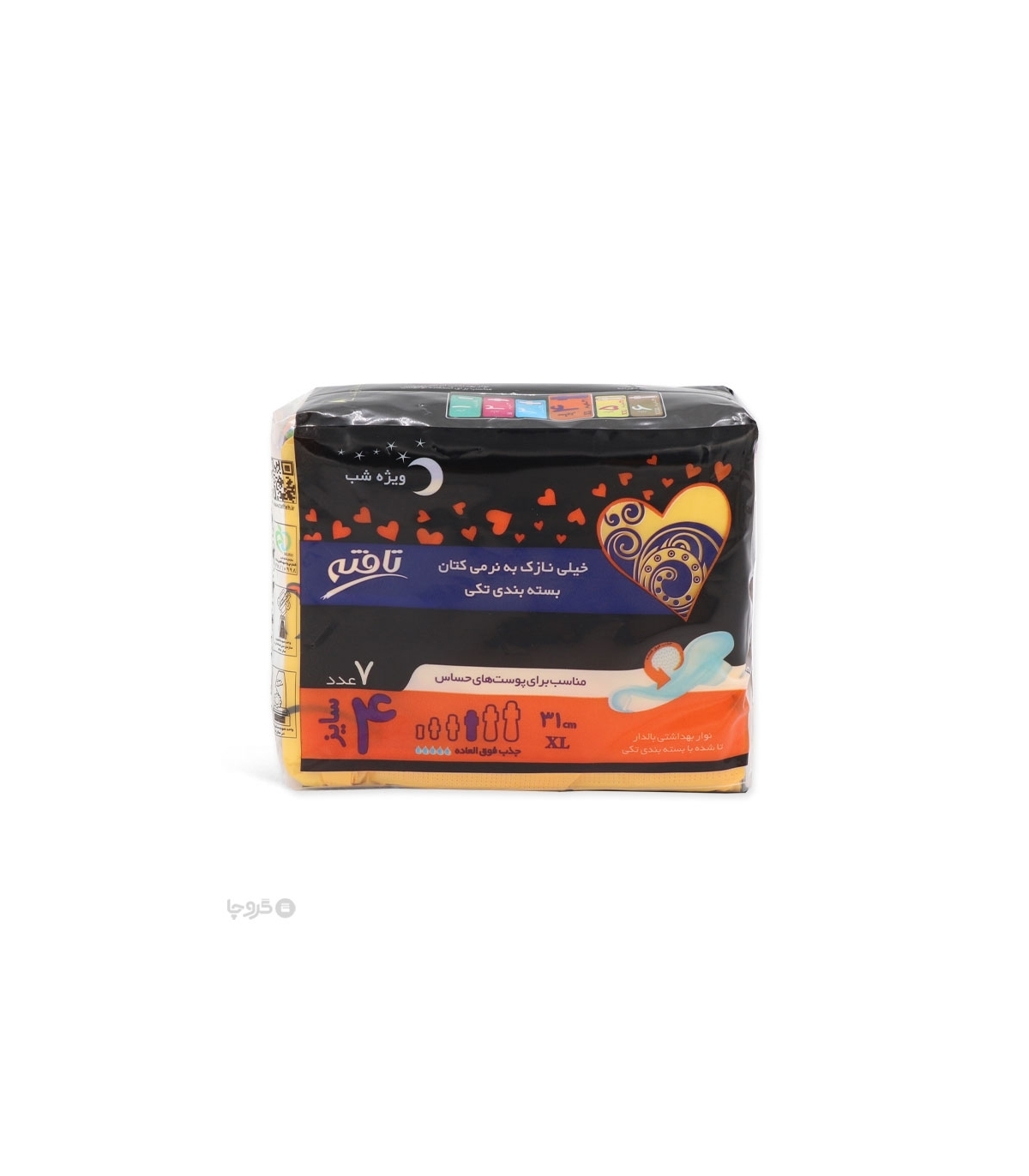 نوار بهداشتی بالدار خیلی نازک کتانی تافته ویژه شب کد 1103 - کارتن 40 عددی
