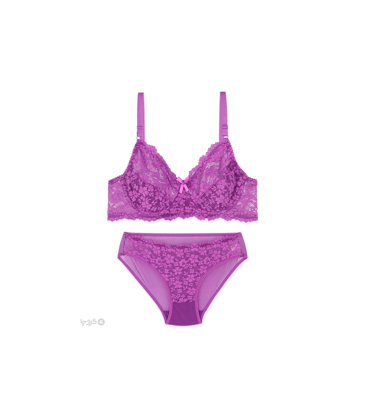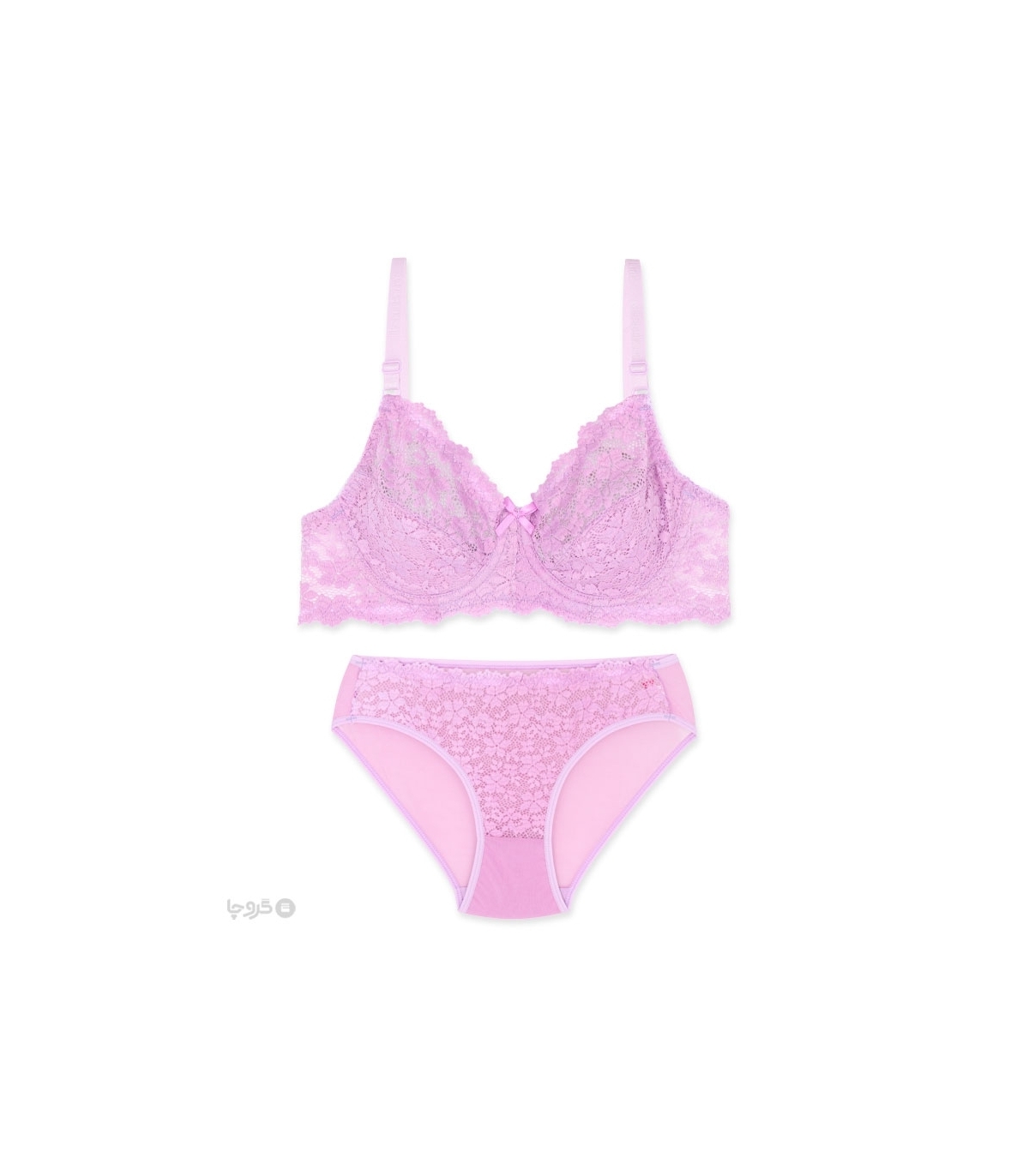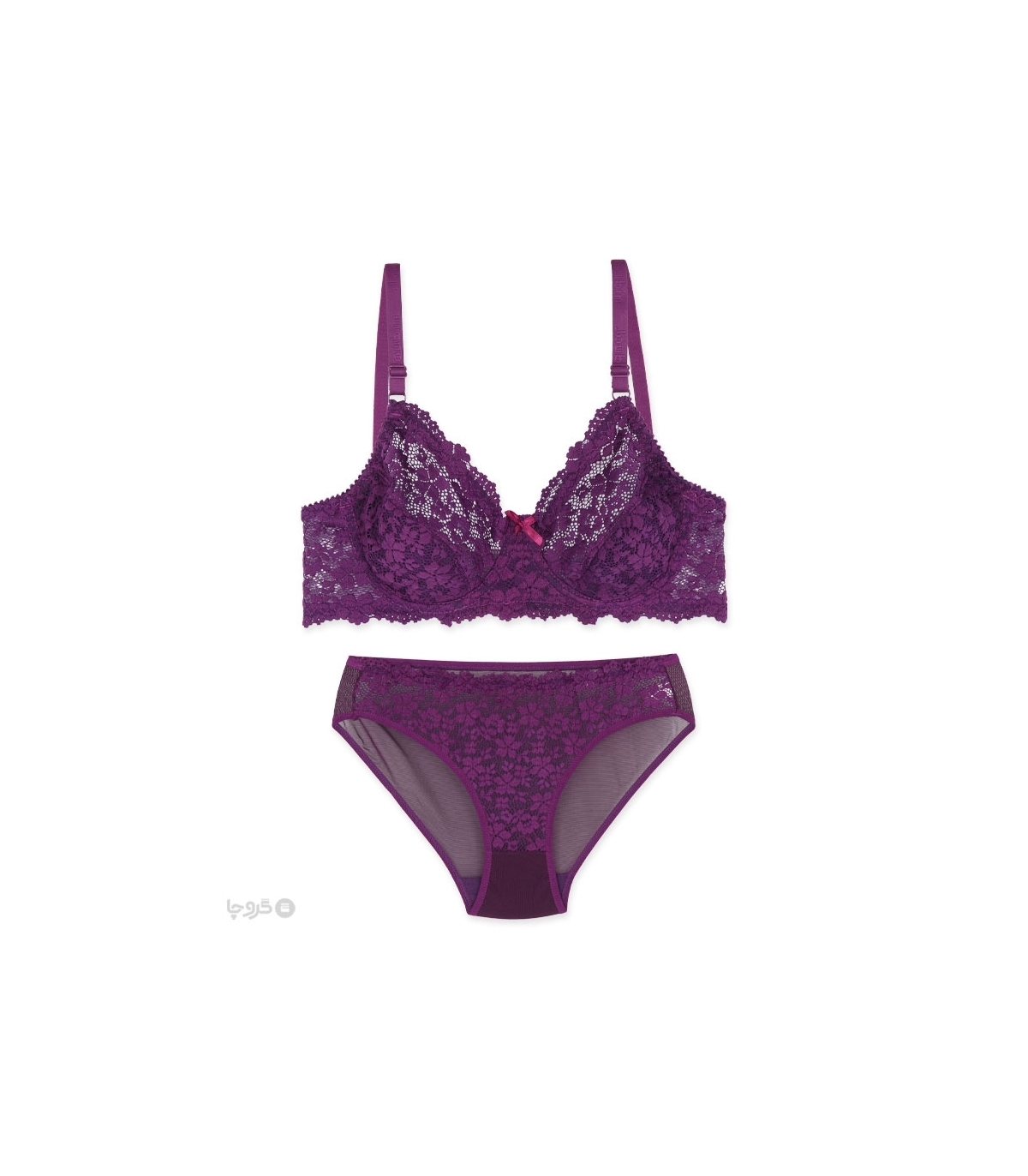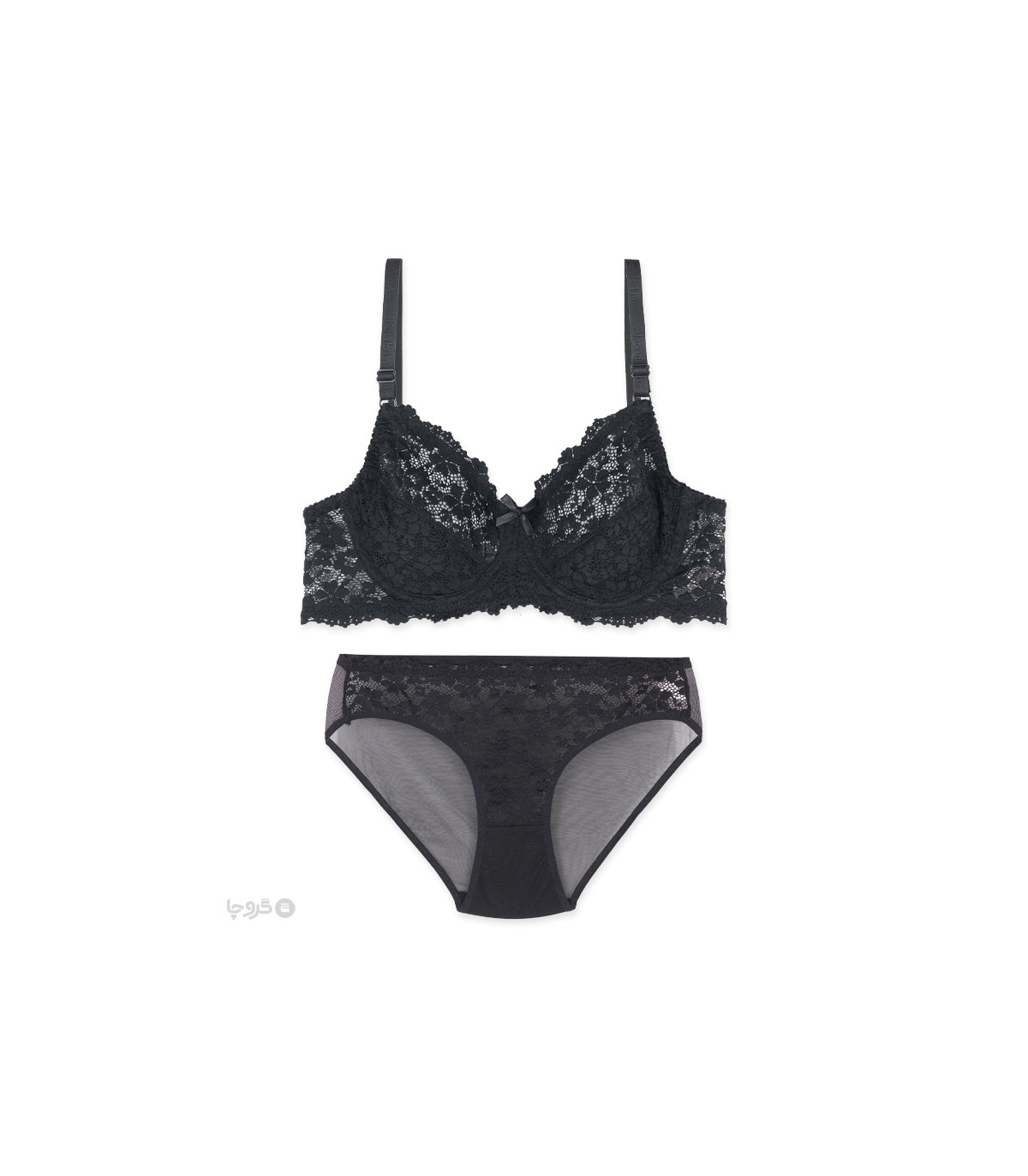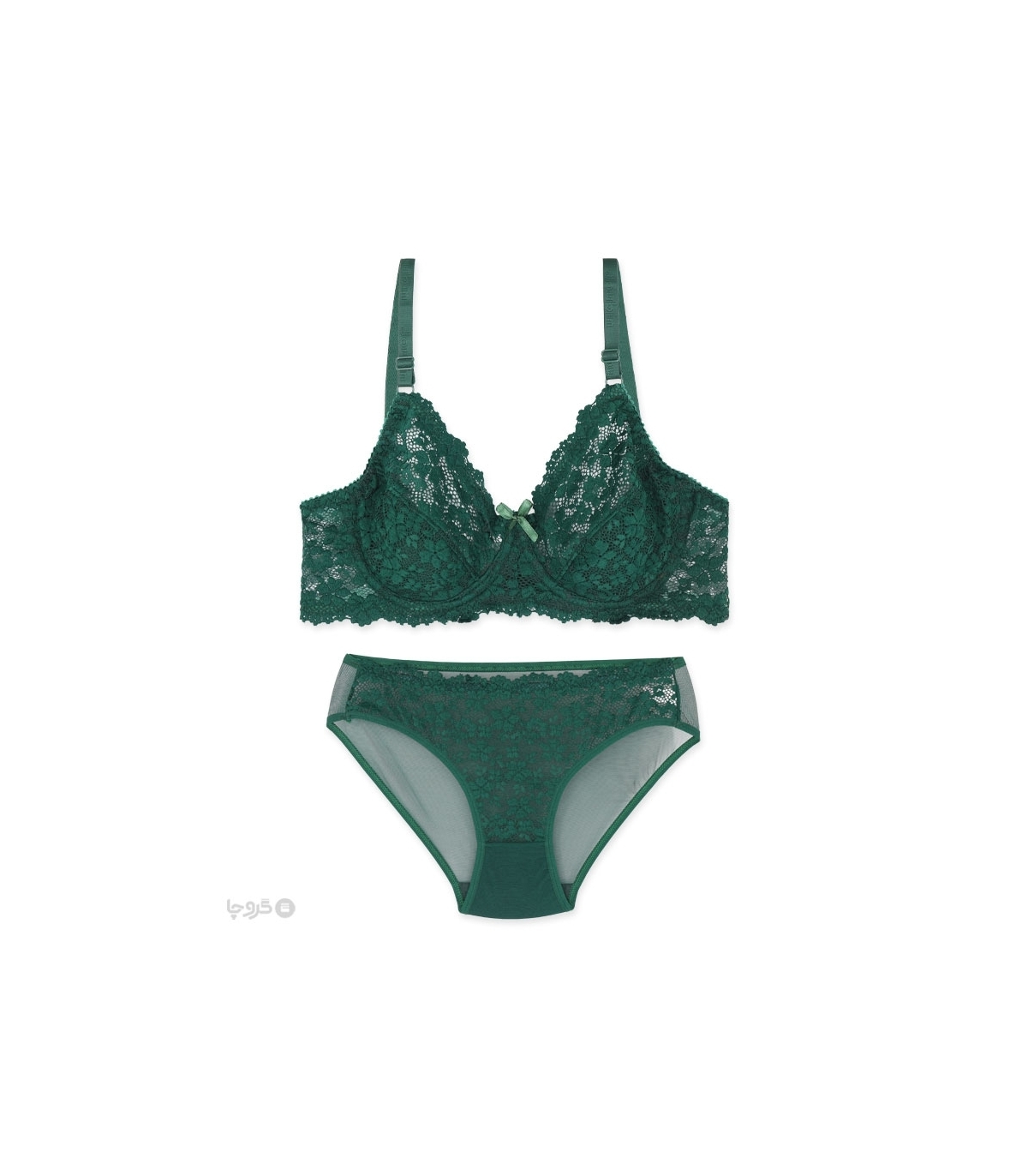 پک ست شورت و سوتین توری فنردار ژوبین کد 125 طرح گلدوزی - بسته 4 عددی