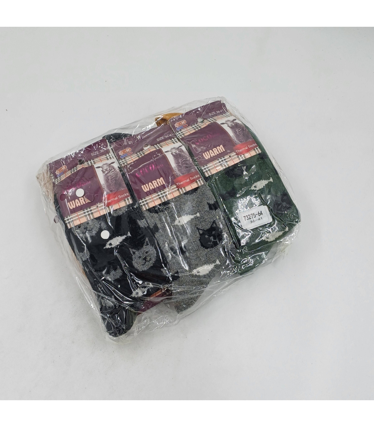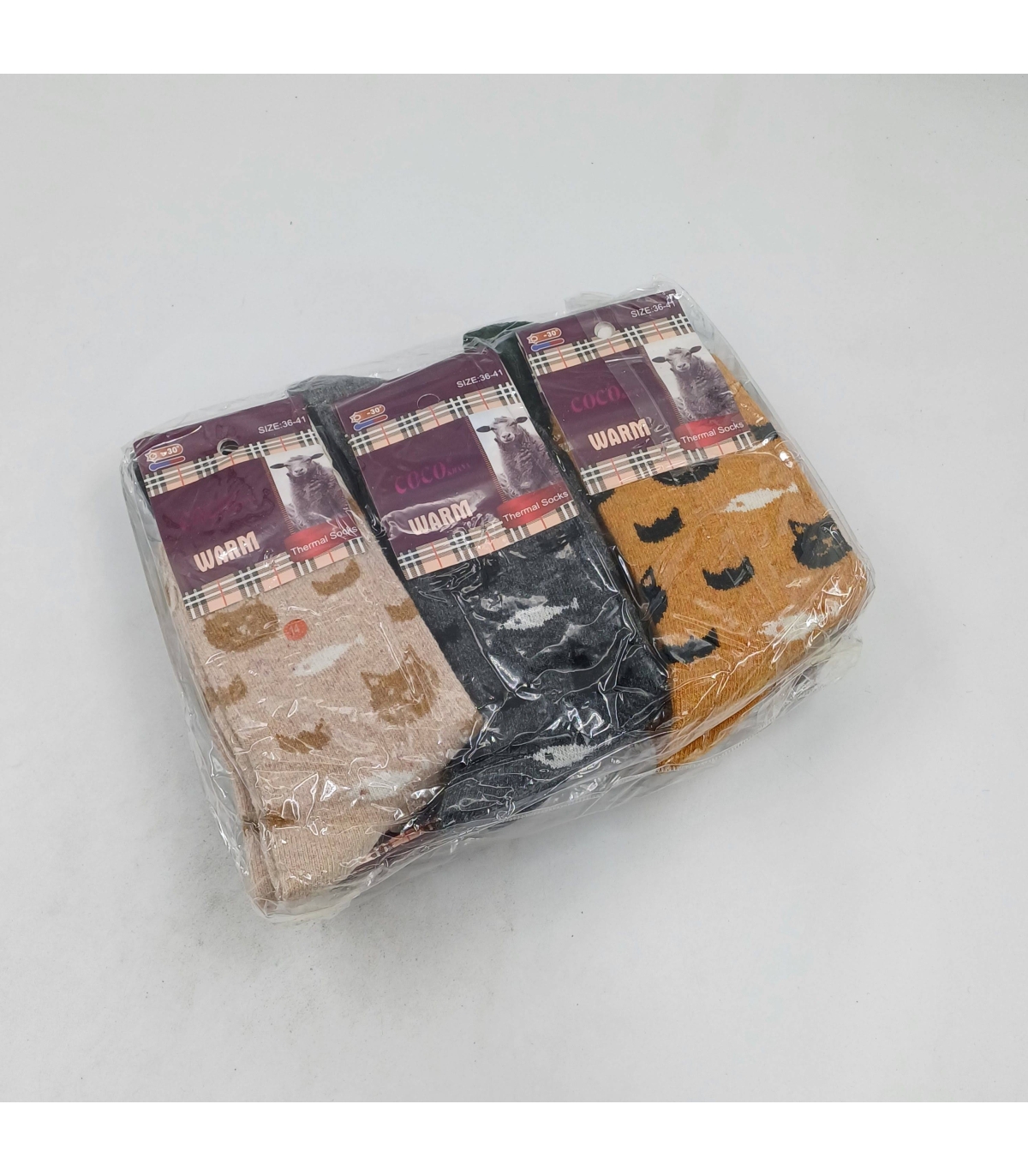 پک جوراب پشمی ساقدار زنانه کوکو اند هانا طرح گربه و ماهی - بسته 12 جفتی