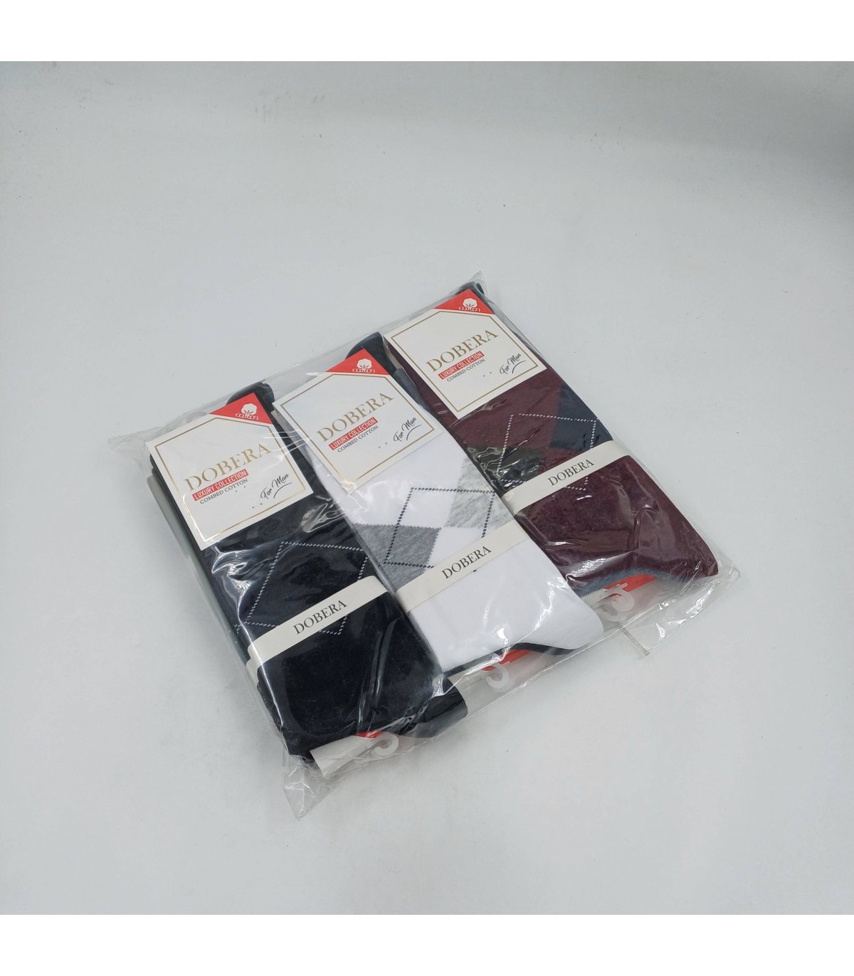 پک جوراب ساقدار مردانه دوبرا نخ هندی طرح آرگایل - بسته 12 جفتی