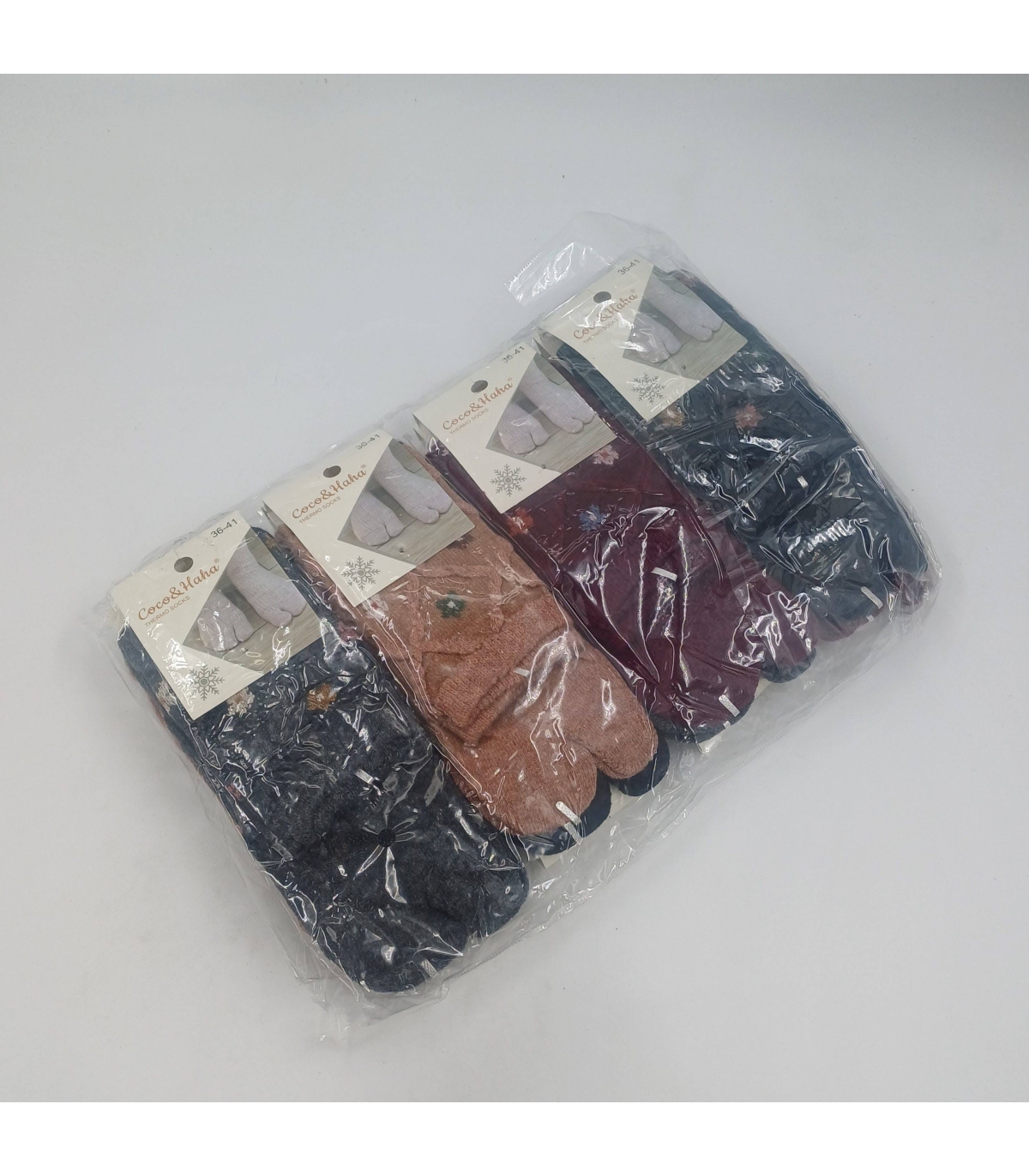 پک جوراب پشمی ساقدار تک انگشتی زنانه کوکو اند هانا طرح گل - بسته 12 جفتی