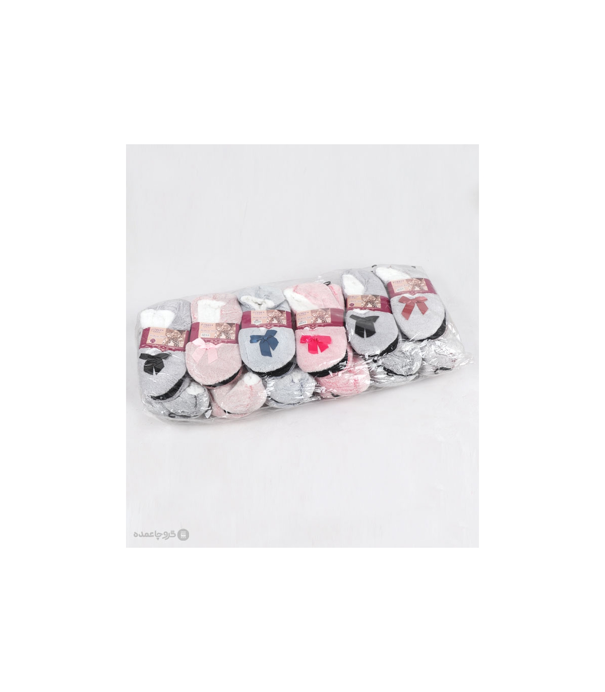 پک پاپوش پشمی پاپیون دار کف استپدار دوبرا طرح برفی - بسته 12 جفتی