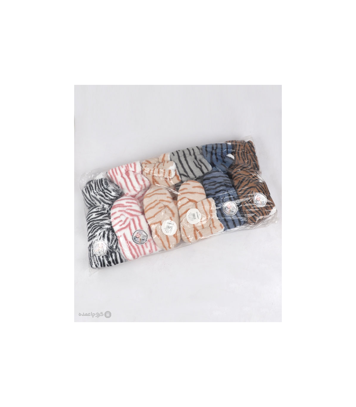 پک پاپوش پشمی ساقدار کف استپدار دوبرا طرح ببری - بسته 12 جفتی